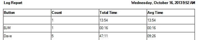 Do you know how long it takes for the average tech workup in your office? How long does the average full exam take? Having good quantifiable answers to these questions will help you have more efficient scheduling and address training for staff if necessary. The Comlite LAN4000 Signaling Software allows you to assign buttons to be timers. You can label the buttons for individual techs or doctors in your office. Simply start the timer when you begin a workup or exam and stop it when you are done. The information is stored and available to print out (see below) The report will show all the times for each tech or doctor along with the overall average time for each person.